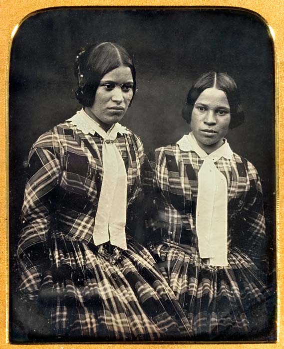 The daguerreotype portrait of Caroline and Sarah shown above is thought to have been taken by Lawson Insley just before Sarah’s marriage to William Henry Honeyfield in April, 1853. According to Andrew Moffat’s research, there is evidence to suggest the portrait may have been commissioned by the Reverend Henry Hanson Turton and given to Sarah as a wedding present. Reverend Turton had a daguerreotype of himself done at the same time. Rather than being styled by others for the occasion, it is likely the sisters had dressed themselves. Caroline was 24 and Sarah was 17 when the portrait was taken.
