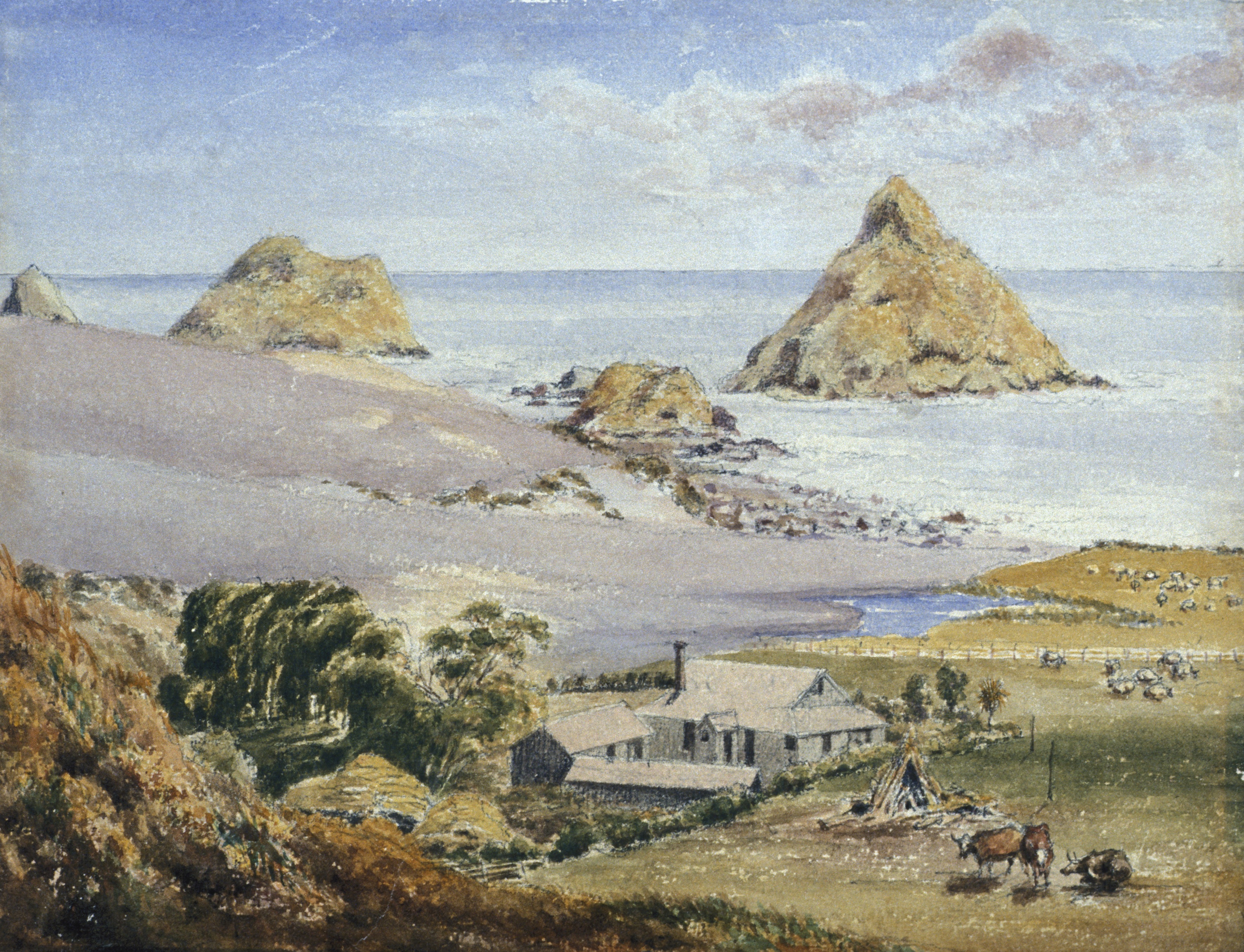 William and Sarah initially lived with William’s cousins, the Morgan’s, at Tataraimaka, as housing at the time was limited and primitive. However, they did not stay long at Tataraimaka, moving back to Moturoa to live in Dicky and Rāwinia’s substantial old house close to where the whaling station once was beside the Hongihongi lagoon in the lee of the islands. It was there that William and Sarah settled to raise their family and farm the Barrett Reserve land. William and Sarah’s farm was targeted by Māori during the first Taranaki land wars in August 1860, when some of their cattle and horses were driven away by raiders from Taranaki and Ngāti Ruanui (Taranaki Herald, August 1860, PapersPast).